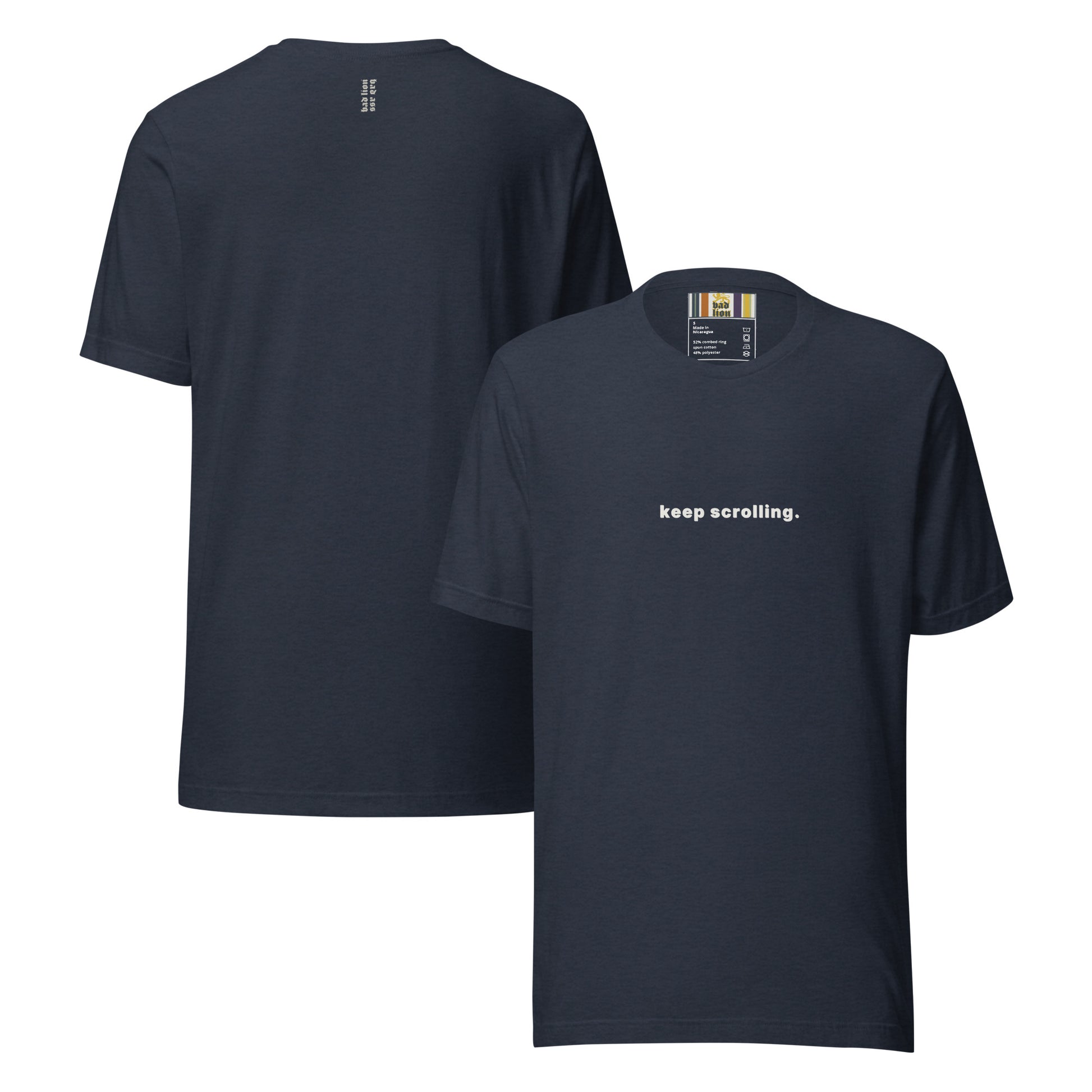 bad lion — stacked and printed quietly where tags usually live. close to the skin. a reminder, not a signal.